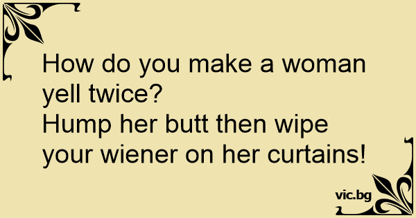Skrig for mig Hvordan for man en kvinde til at skrige to gange? – Først boller man hende i røven og bagefter tørre man den af i hendes gardin