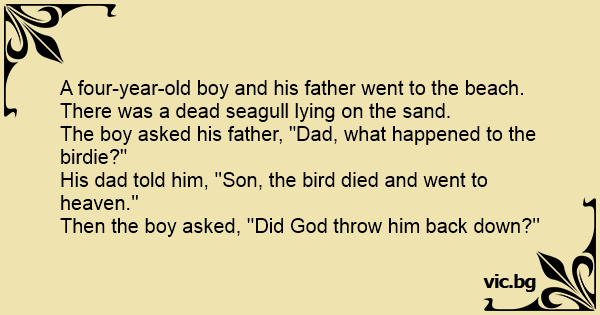 A four-year-old boy and his father went to the beach. There was a dead seagull lying on the sand.