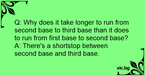 Q: Why does it take longer to run from second base to third base than it does to run from first base to second base?