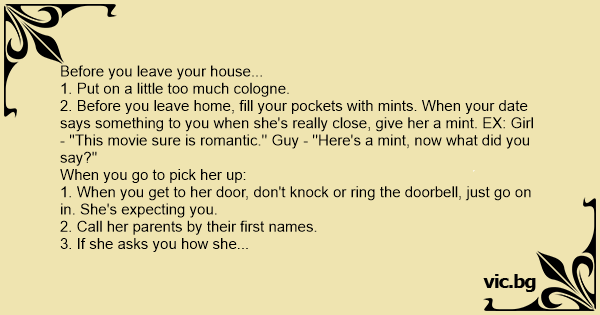 2. Before you leave home, fill your pockets with mints. When your date says something to you when she's really close, give her a mint. EX: Girl - ''This movie sure is romantic.'' Guy - ''Here's a mint, now what did you say?''