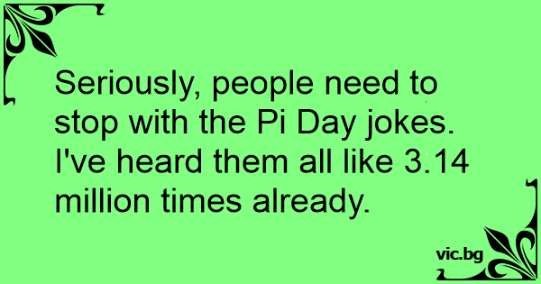 Seriously, people need to stop with the Pi Day jokes. I've heard them all like 3.14 million times already.