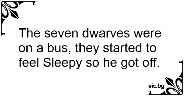 The seven dwarves were on a bus, they started to feel Sleepy so he got off.