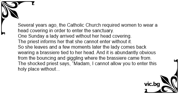 Several years ago, the Catholic Church required women to wear a head covering in order to enter the sanctuary.