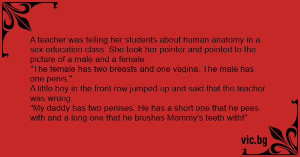 A teacher was telling her students about human anatomy in a sеx education class. She took her pointer and pointed to the picture of a male and a female.