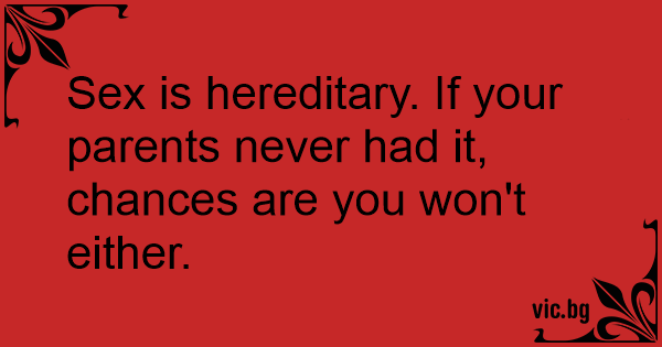 Sеx is hereditary. If your parents never had it, chances are you won't either.