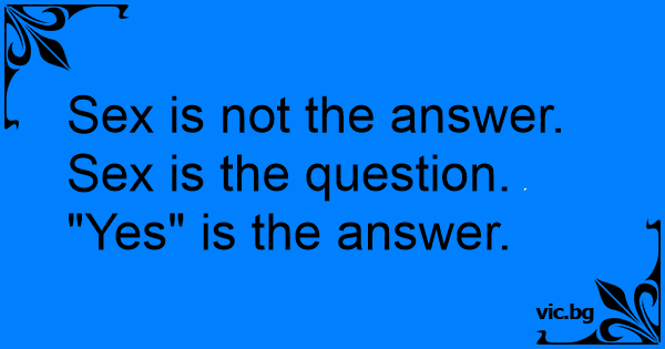 Sеx is not the answer. Sеx is the question. "Yes" is the answer.