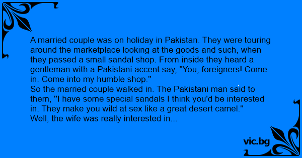 So the married couple walked in. The Pakistani man said to them, ''I have some special sandals I think you'd be interested in. They make you wild at sеx like a great desert camel.''