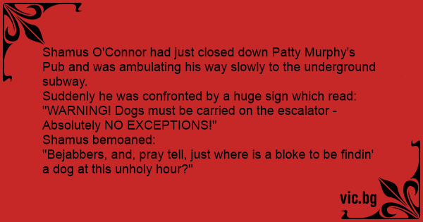 Shamus O'Connor had just closed down Patty Murphy's Pub and was ambulating his way slowly to the underground subway.