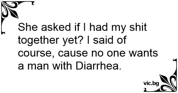 She asked if I had my shiт together yet? I said of course, cause no one wants a man with Diarrhea.