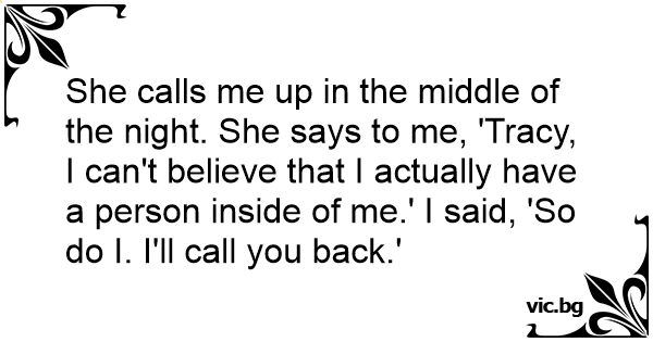 She calls me up in the middle of the night. She says to me, 'Tracy, I can't believe that I actually have a person inside of me.' I said, 'So do I. I'll call you back.'