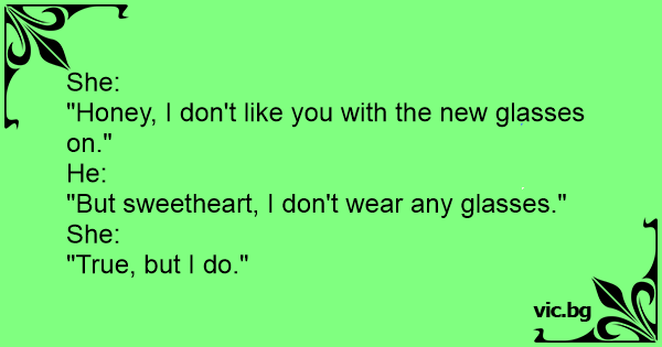 "Honey, I don't like you with the new glasses on."