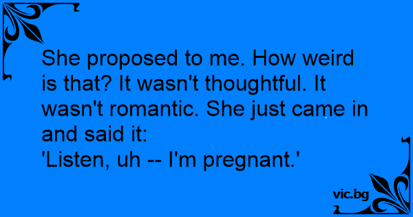 She proposed to me. How weird is that? It wasn't thoughtful. It wasn't romantic. She just came in and said it: