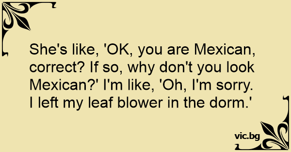She's like, 'OK, you are Mexican, correct? If so, why don't you look Mexican?' I'm like, 'Oh, I'm sorry. I left my leaf blower in the dorm.'