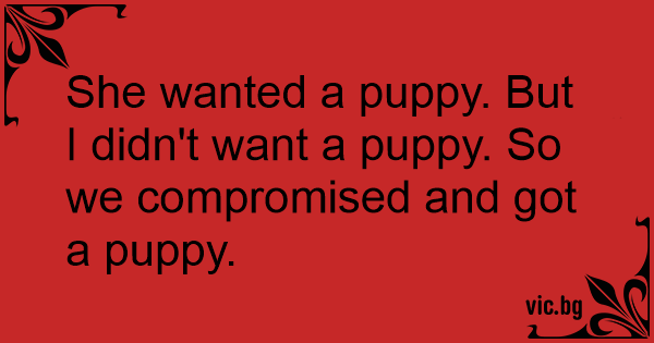 She wanted a puppy. But I didn't want a puppy. So we compromised and got a puppy.