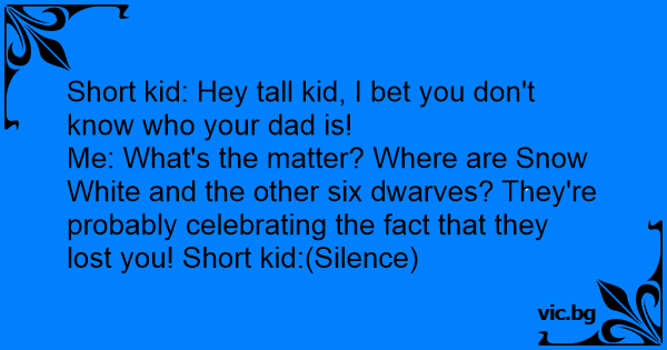Me: What's the matter? Where are Snow White and the other six dwarves? They're probably celebrating the fact that they lost you! Short kid:(Silence)