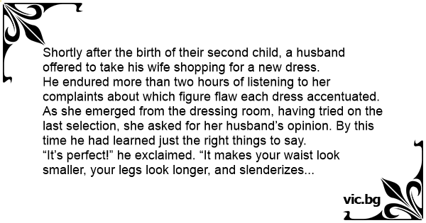 Shortly after the birth of their second child, a husband offered to take his wife shopping for a new dress.