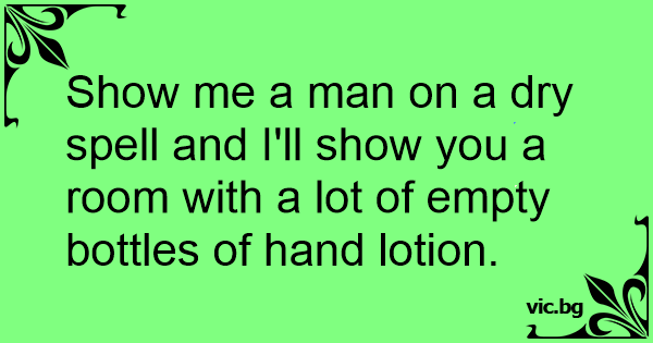 Show me a man on a dry spell and I'll show you a room with a lot of empty bottles of hand lotion. 0 0 0 Men jokes Sex Jokes