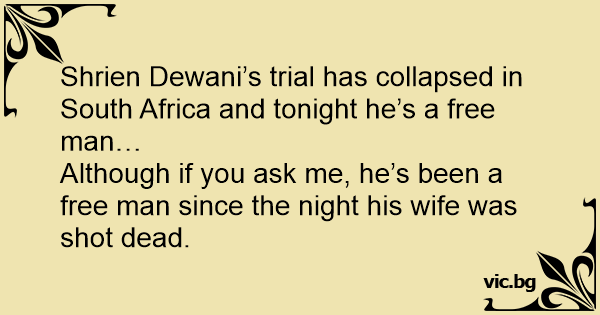 Shrien Dewani’s trial has collapsed in South Africa and tonight he’s a free man… Although if you ask me, he’s been a free man since the night his wife was shot dead.