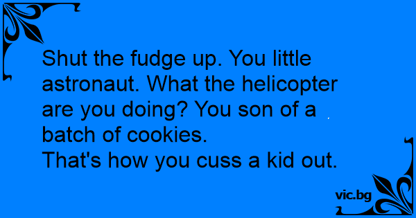 Shut the fudge up. You little astronaut. What the helicopter are you doing? You son of a batch of cookies.