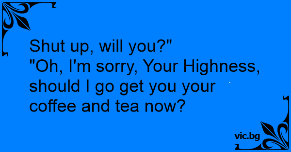 "Oh, I'm sorry, Your Highness, should I go get you your coffee and tea now?