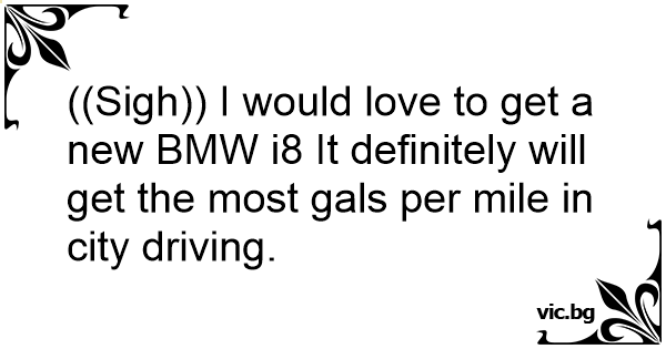 ((Sigh)) I would love to get a new BMW i8 It definitely will get the most gals per mile in city driving.