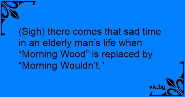 (Sigh) there comes that sad time in an elderly man’s life when “Morning Wood” is replaced by “Morning Wouldn’t.”