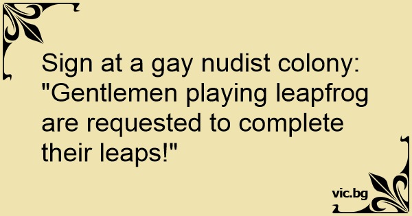 Sign at a gаy nudist colony: "Gentlemen playing leapfrog are requested to complete their leaps!"