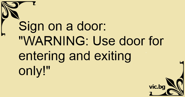 "WARNING: Use door for entering and exiting only!"
