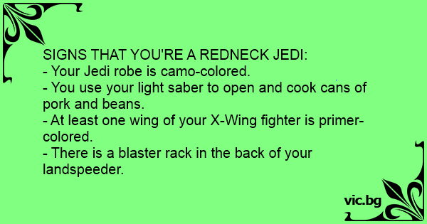 SIGNS THAT YOU'RE A REDNECK JEDI: