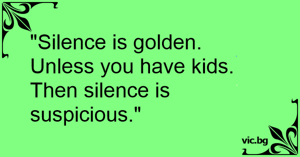 "Silence is golden. Unless you have kids. Then silence is suspicious."