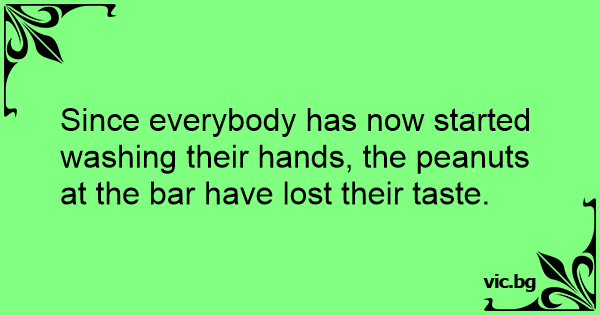 Since everybody has now started washing their hands, the peanuts at the bar have lost their taste.