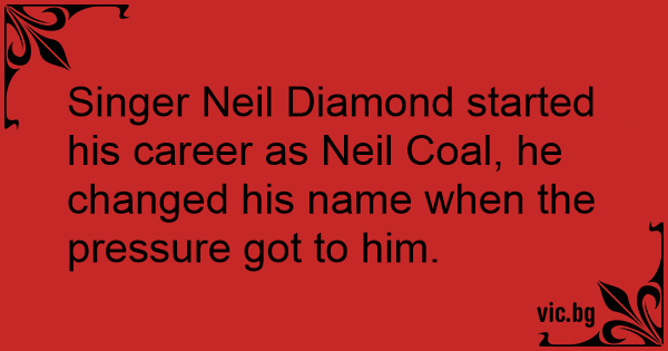 Singer Neil Diamond started his career as Neil Coal, he changed his name when the pressure got to him.
