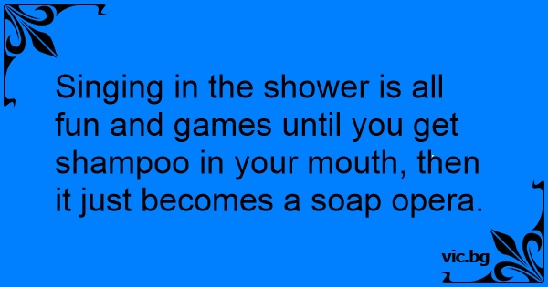 Singing in the shower is all fun and games until you get shampoo in your mouth, then it just becomes a soap opera.