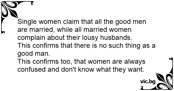 Single women claim that all the good men are married, while all married women complain about their lousy husbands.