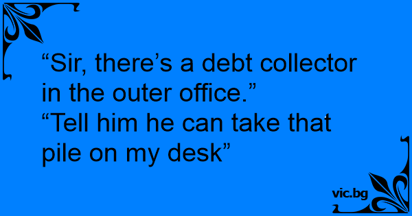 “Sir, there’s a debt collector in the outer office.”