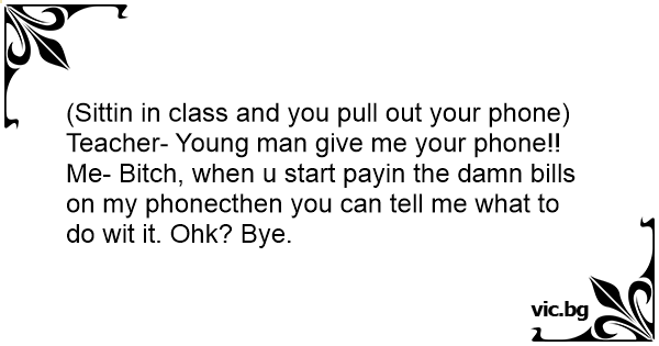 Me- Вiтсh, when u start payin the dамn bills on my phonecthen you can tell me what to do wit it. Ohk? Bye.