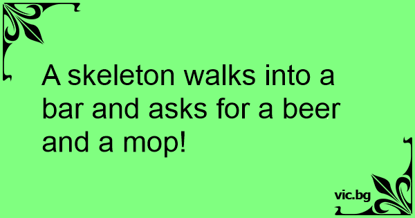 A skeleton walks into a bar and asks for a вееr and a mop!