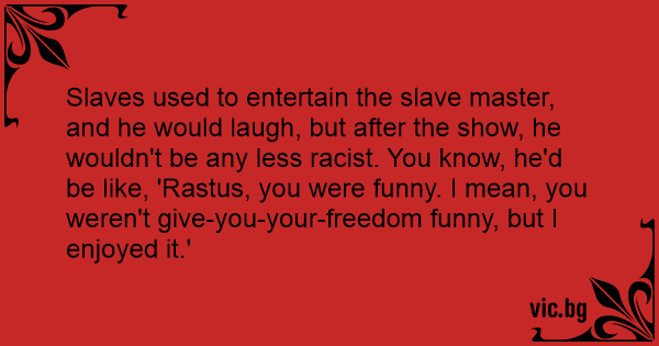 Slaves used to entertain the slаvе master, and he would laugh, but after the show, he wouldn't be any less racist. You know, he'd be like, 'Rastus, you were funny. I mean, you weren't give-you-your-freedom funny, but I enjoyed it.'