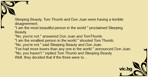 Sleeping Beauty, Tom Thumb and Don Juan were having a terrible disagreement.