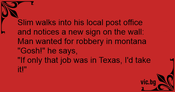 Slim walks into his local post office and notices a new sign on the wall: