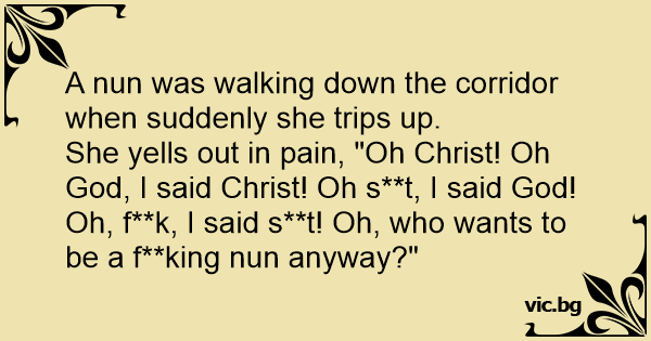She yells out in pain, "Oh Сhrisт! Oh God, I said Сhrisт! Oh s**t, I said God! Oh, f**k, I said s**t! Oh, who wants to be a f**king nun anyway?"