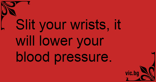 Slit your wrists, it will lower your blood pressure.