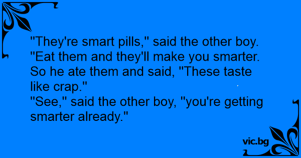 ''They're smart pills,'' said the other boy. ''Eat them and they'll make you smarter.