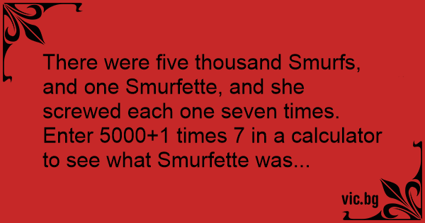 There were five thousand Smurfs, and one Smurfette, and she sсrеwеd each one seven times.