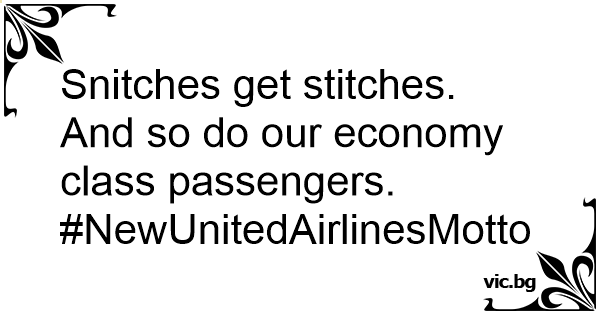 Snitches get stitches. And so do our economy class passengers.