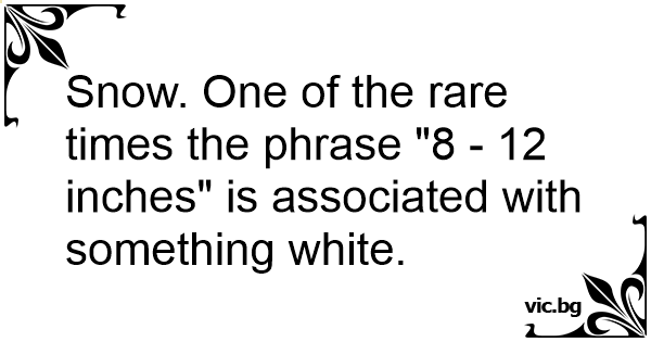 Snow. One of the rare times the phrase "8 - 12 inches" is associated with something white.