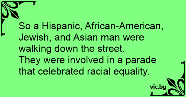 So a Hispanic, African-American, Jewish, and Asian man were walking down the street.