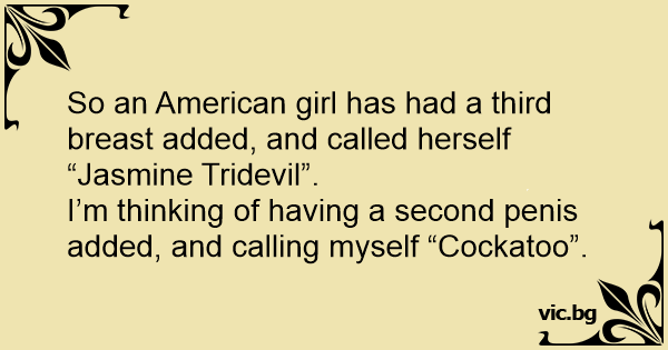 I’m thinking of having a second реnis added, and calling myself “Cockatoo”.