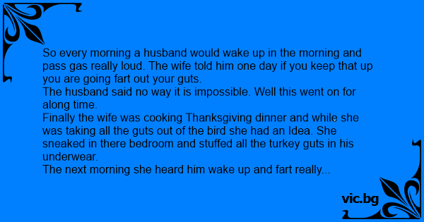 So every morning a husband would wake up in the morning and pass gas really loud. The wife told him one day if you keep that up you are going fаrт out your guts.