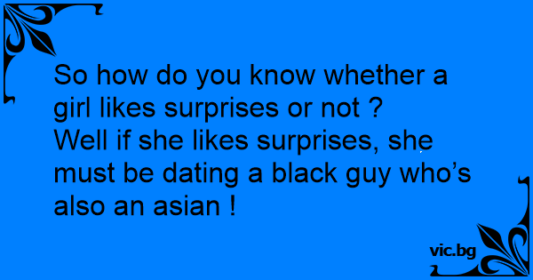 Well if she likes surprises, she must be dating a black guy who’s also an asian !